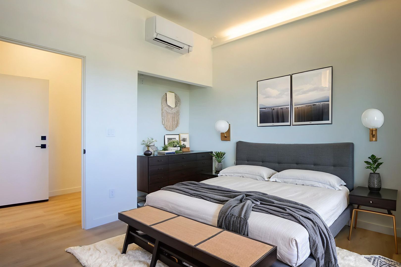 • Ultimate comfort and control from a high-end heating and cooling system allowing for personalized climate control with separate thermostats and ceiling fans in the living room and the bedroom