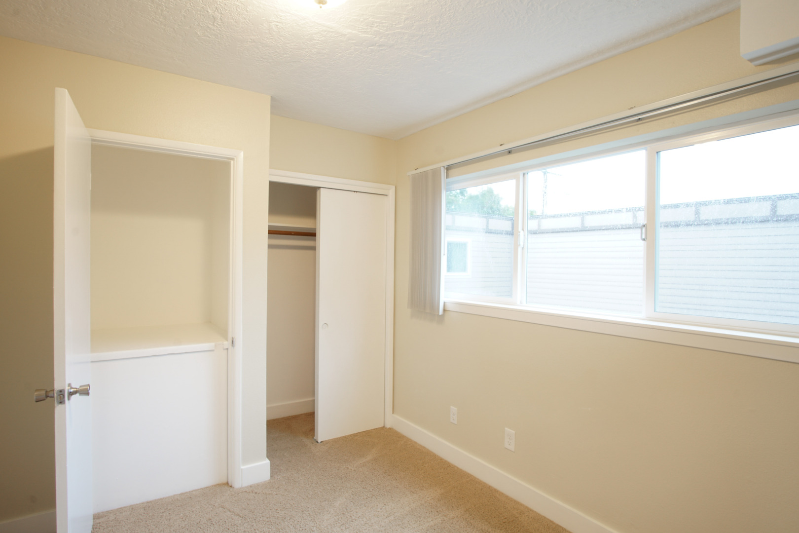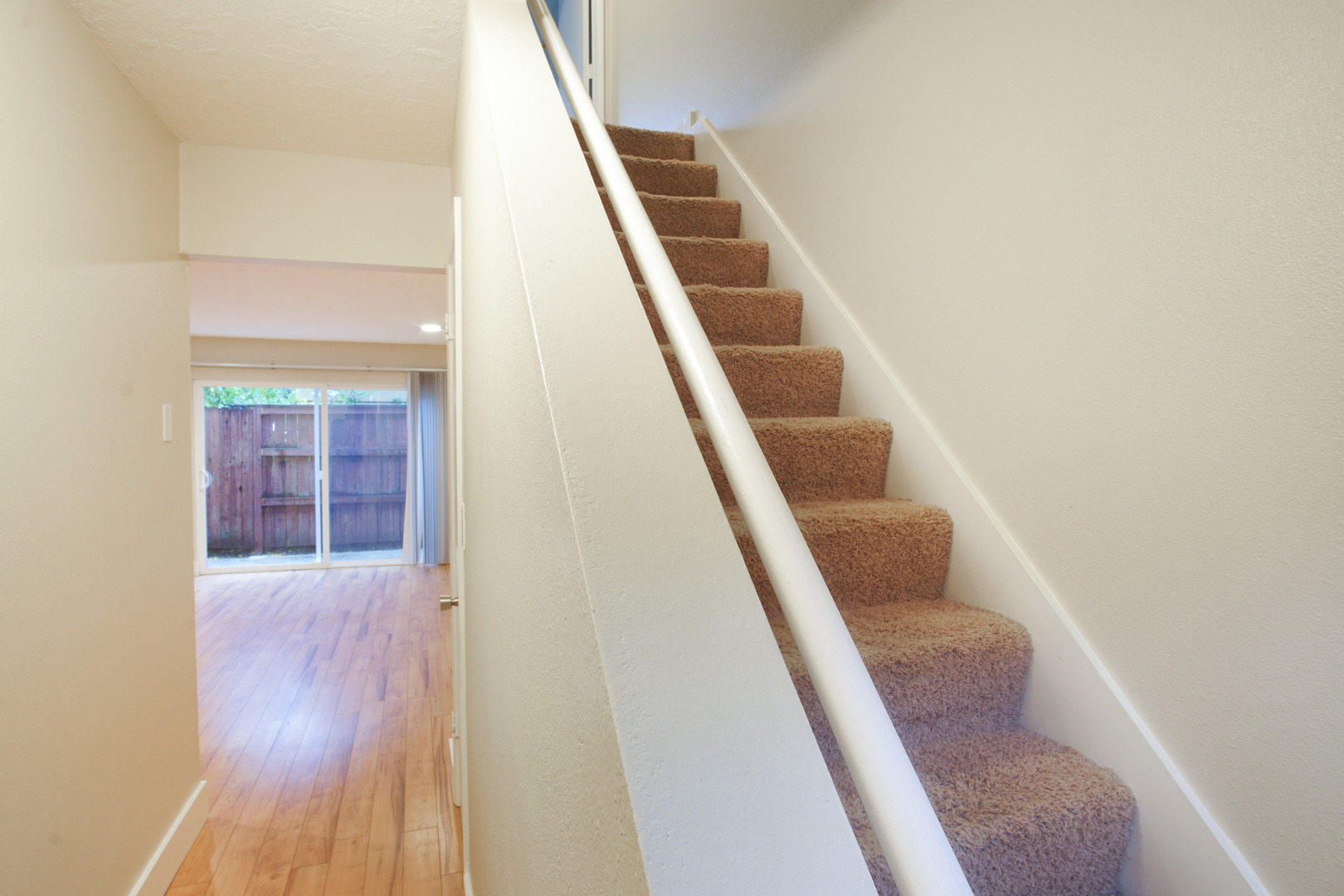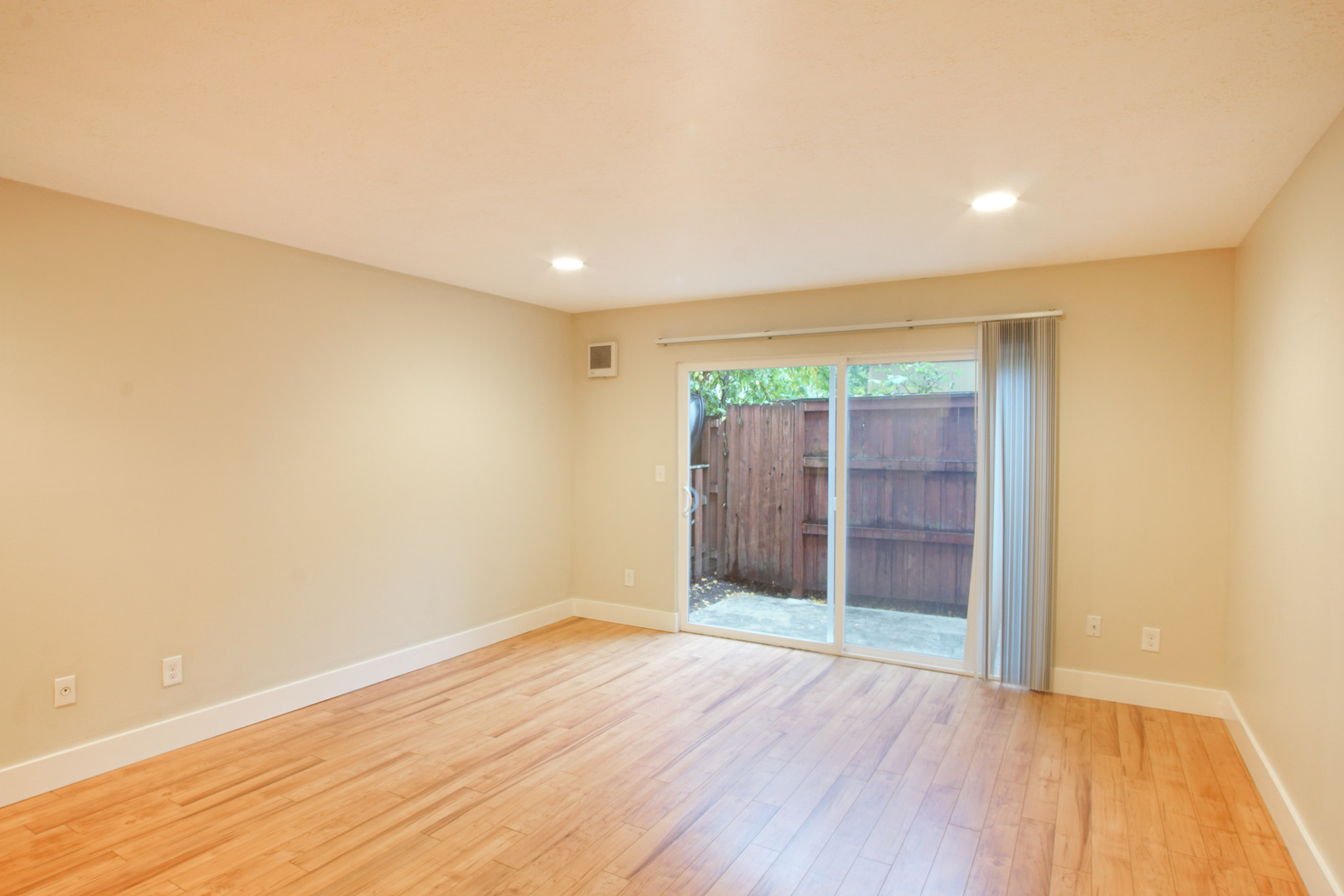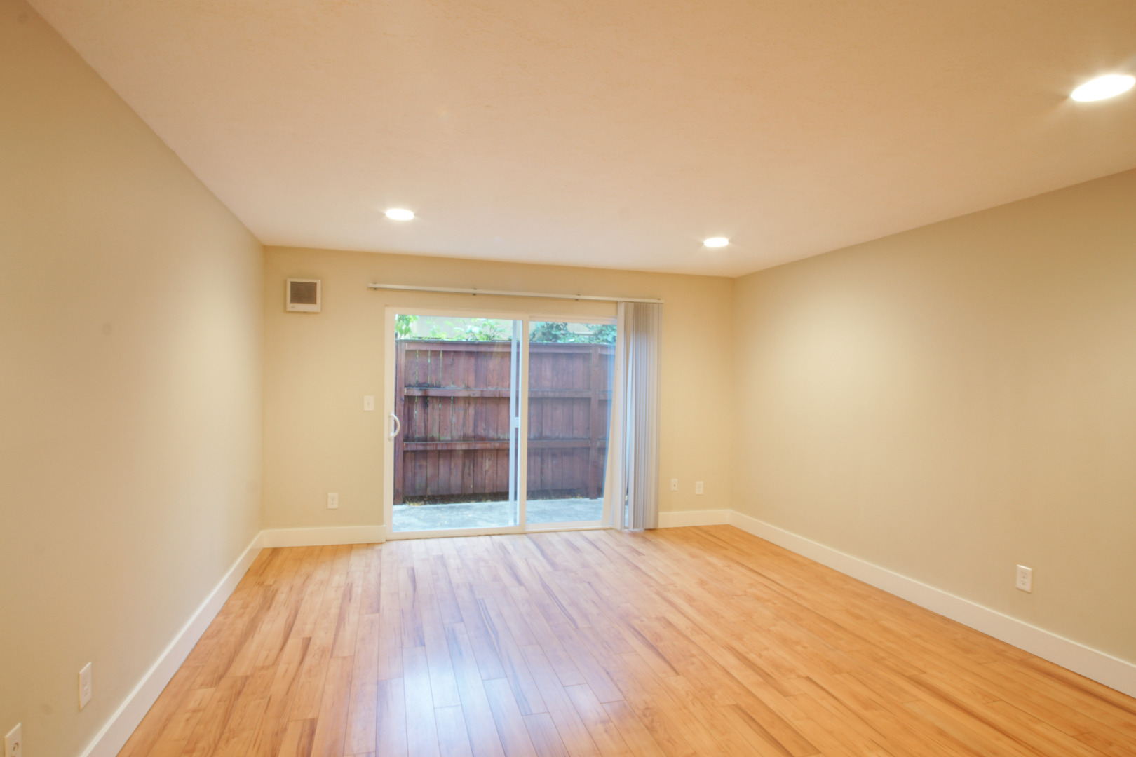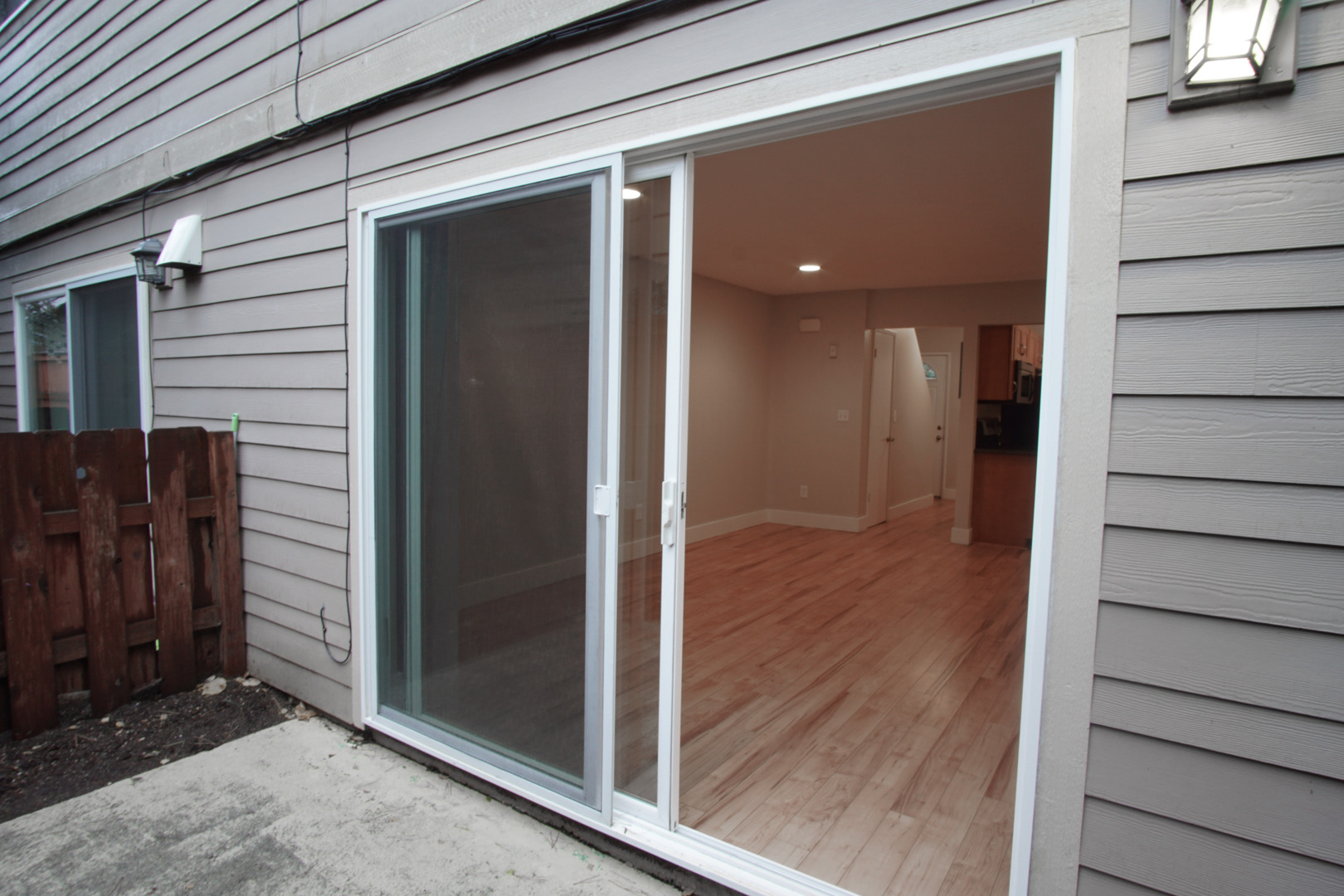 - Sliding glass doors lead to a fenced patio