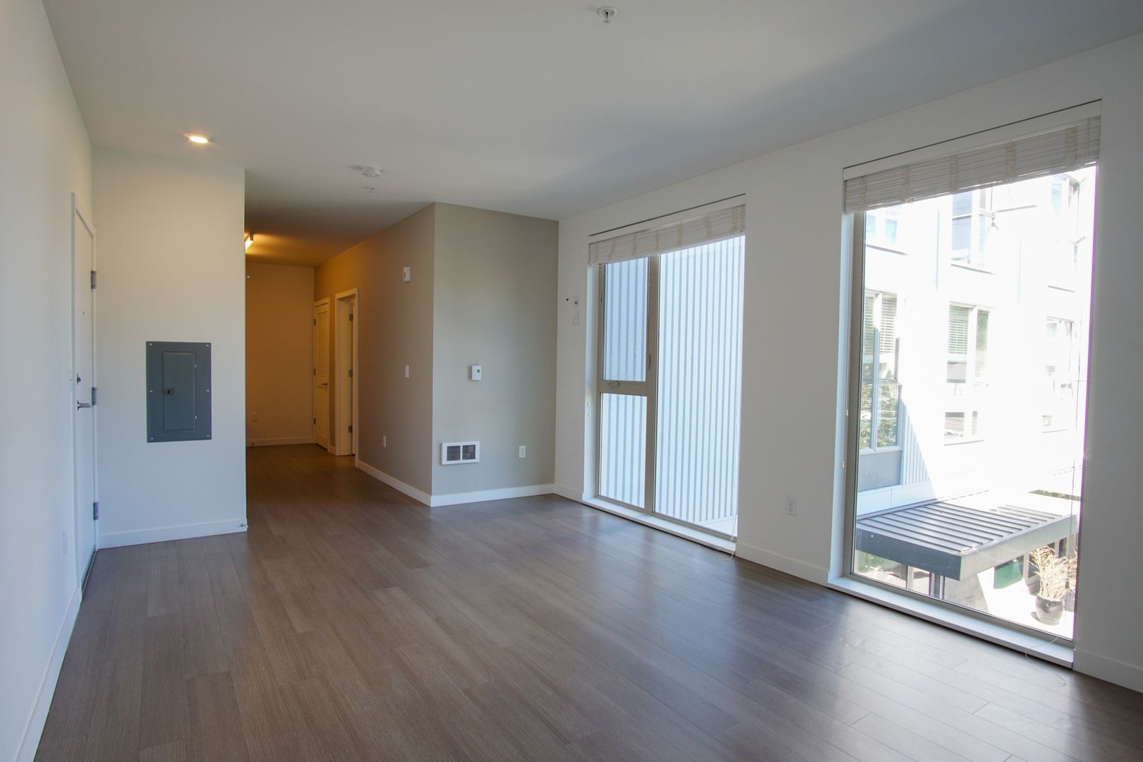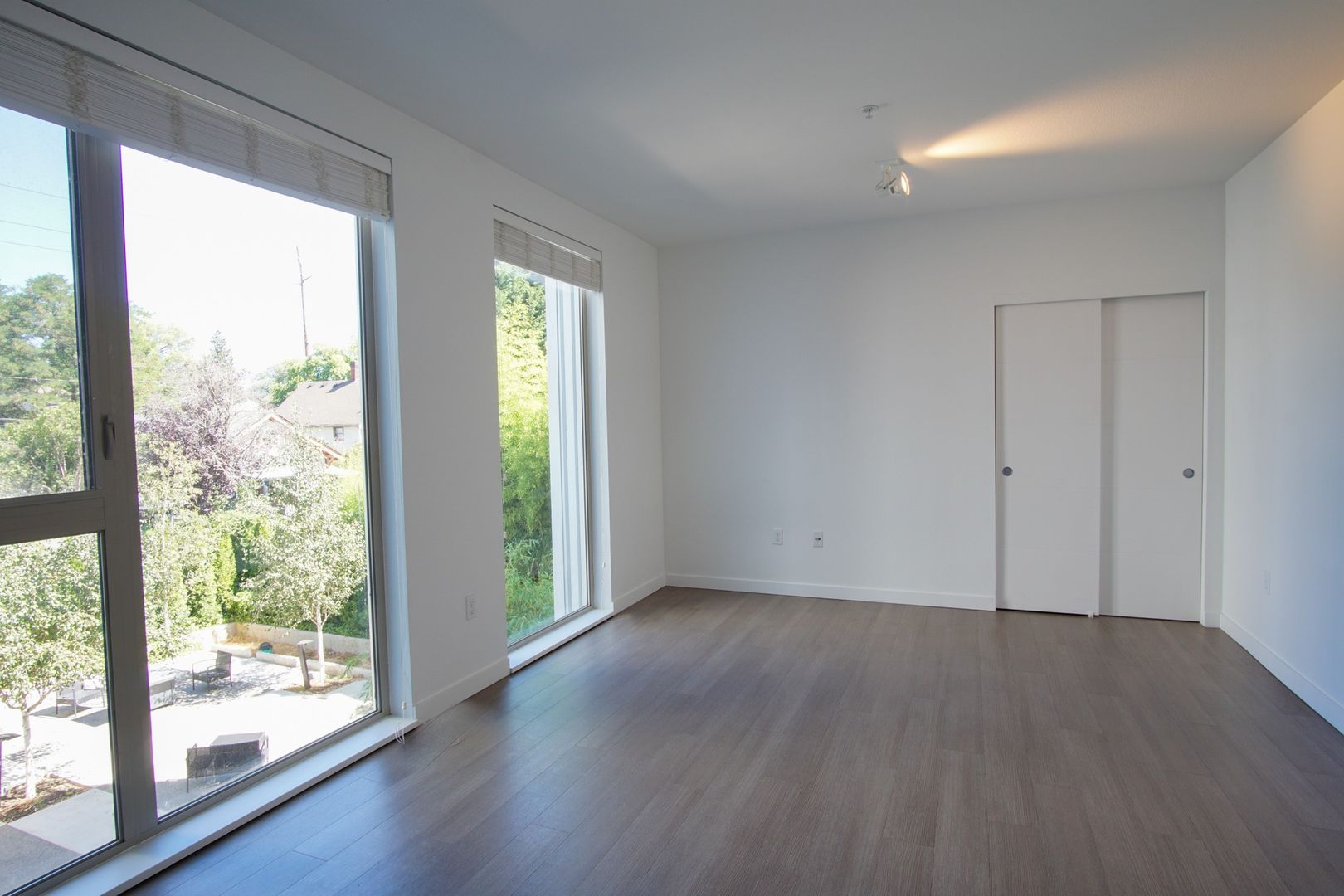 - Floor-to-ceiling windows provide natural light