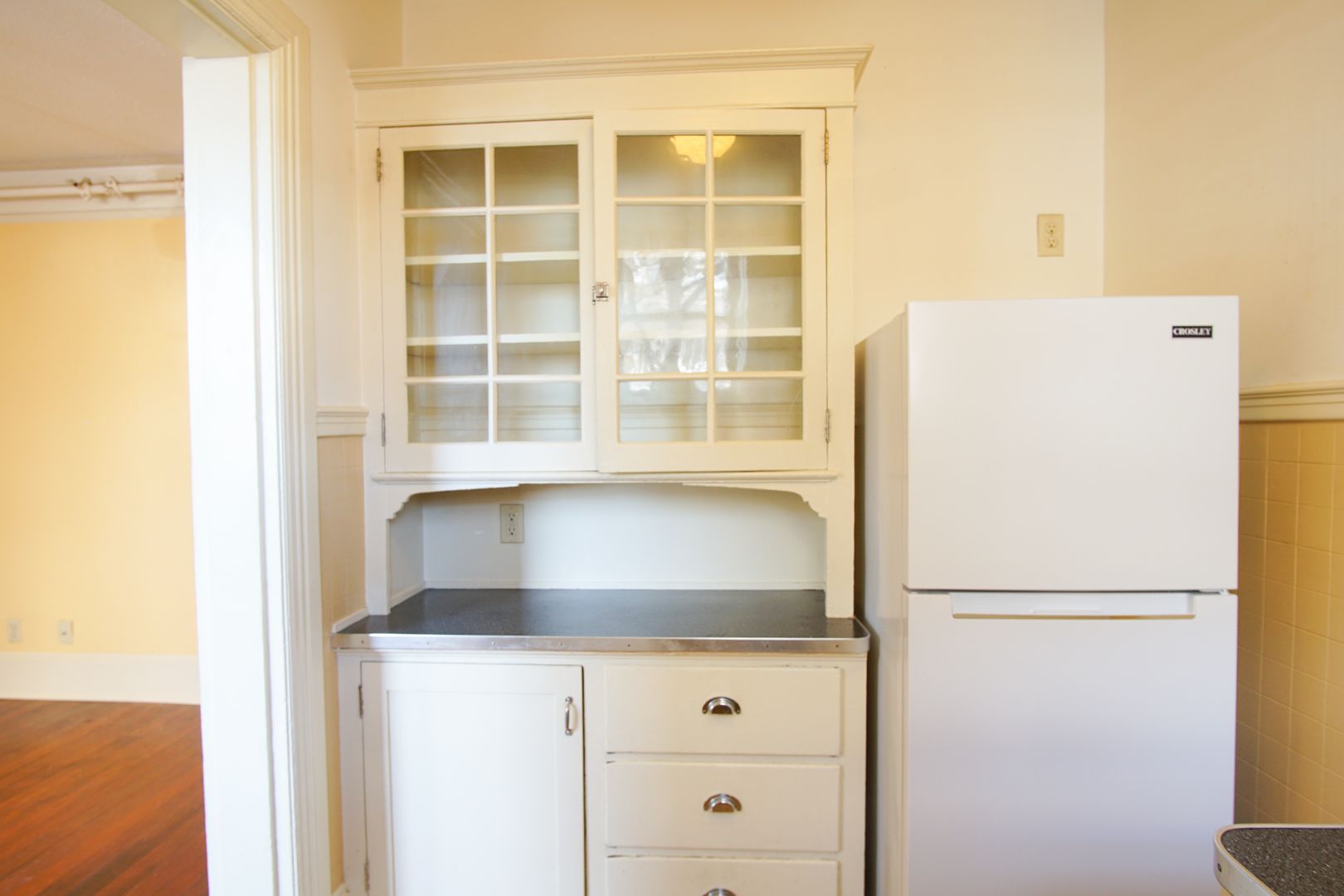 - Built-in glass fronted hutch