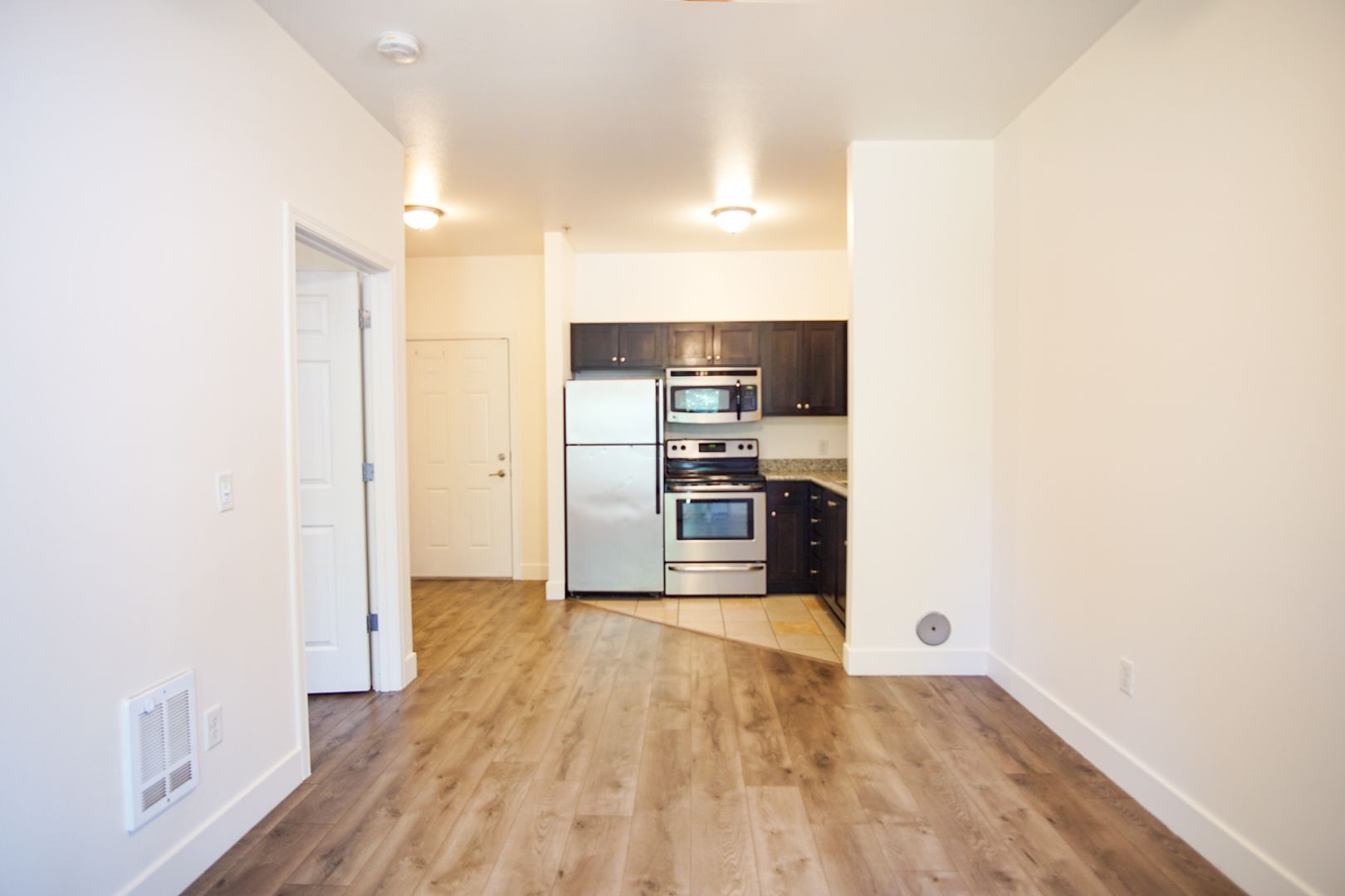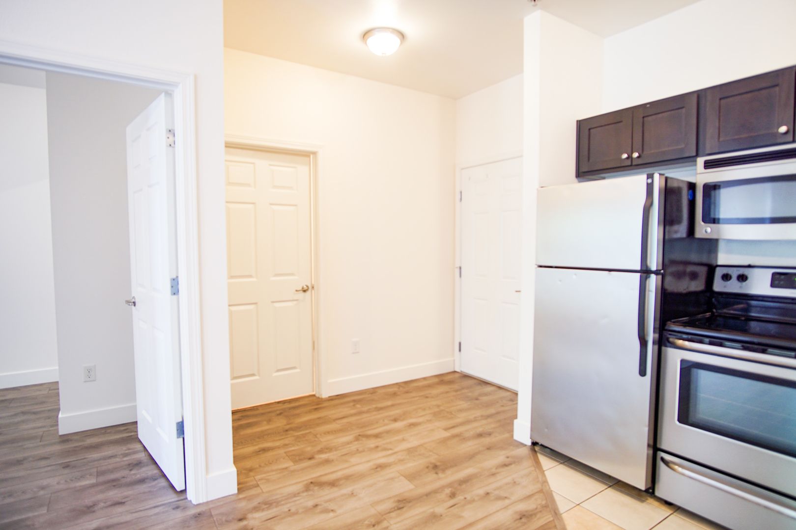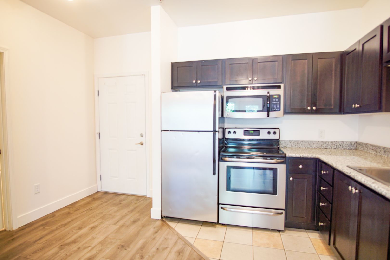 - Stainless steel appliances including a built-in microwave oven