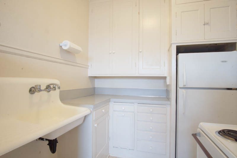 - Kitchen has turn of the century cabinetry & drainboard sink