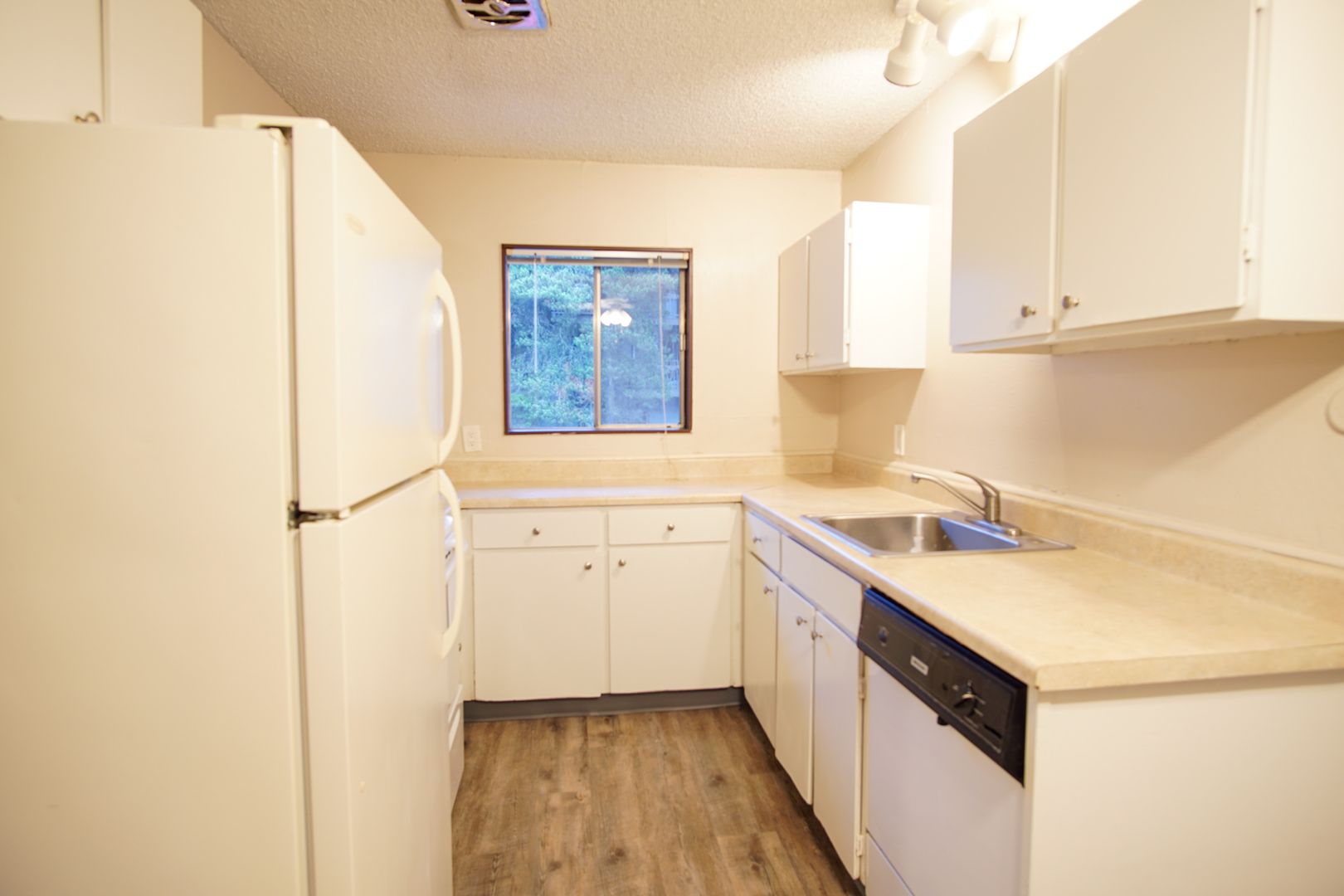 - Dishwasher + white cabinetry