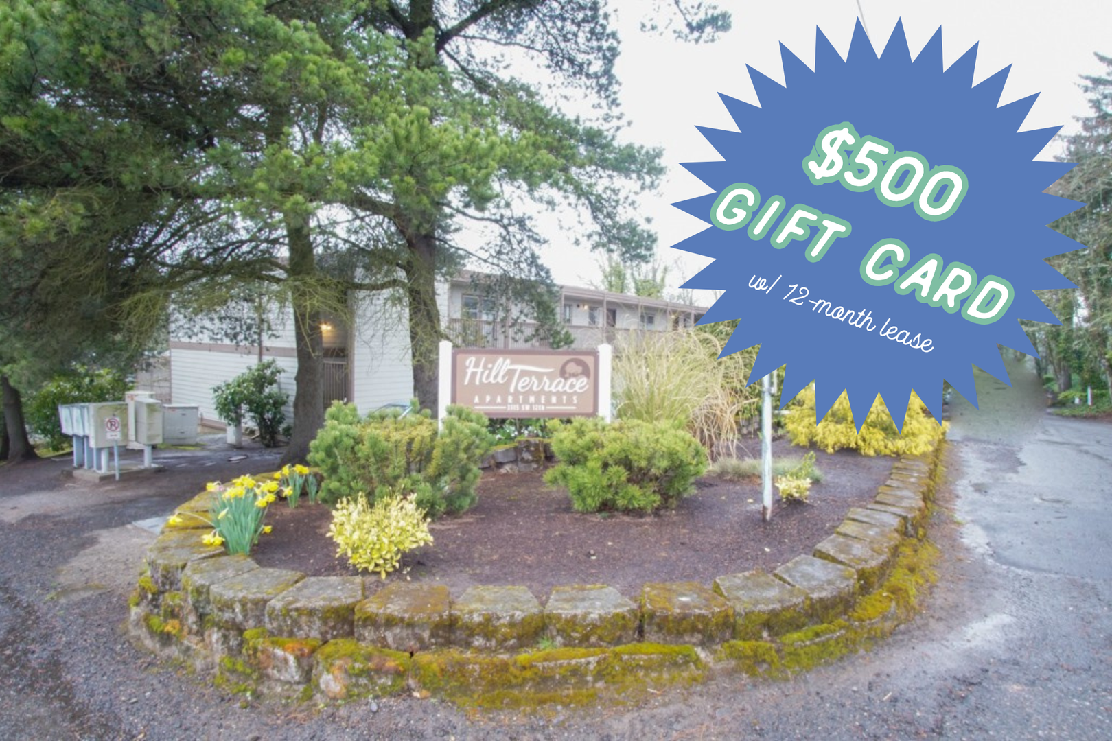 Put some money in your pocket! You'll receive a $500 Gift Card when you sign a 12-month lease!
