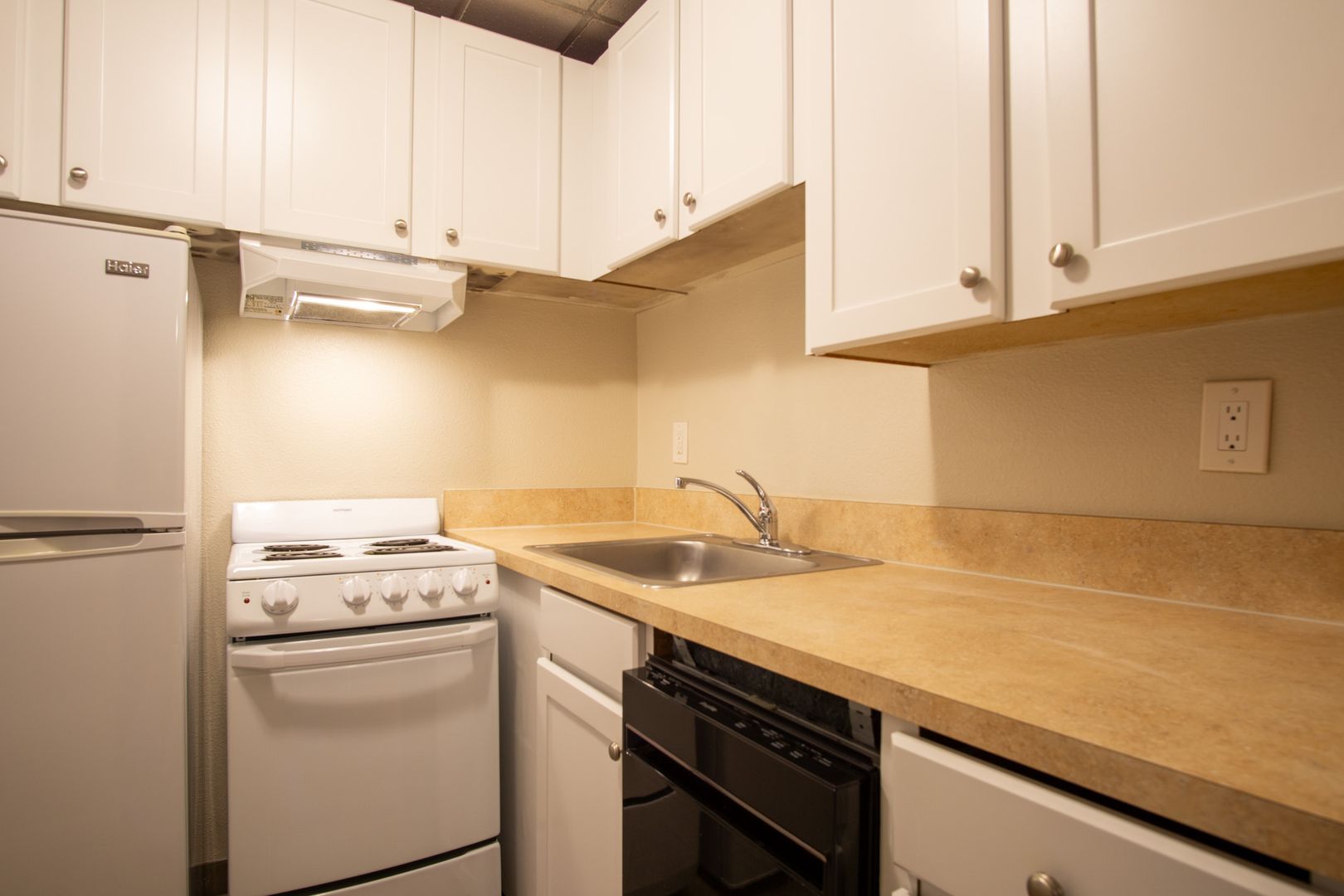 - Compact kitchen with dishwasher