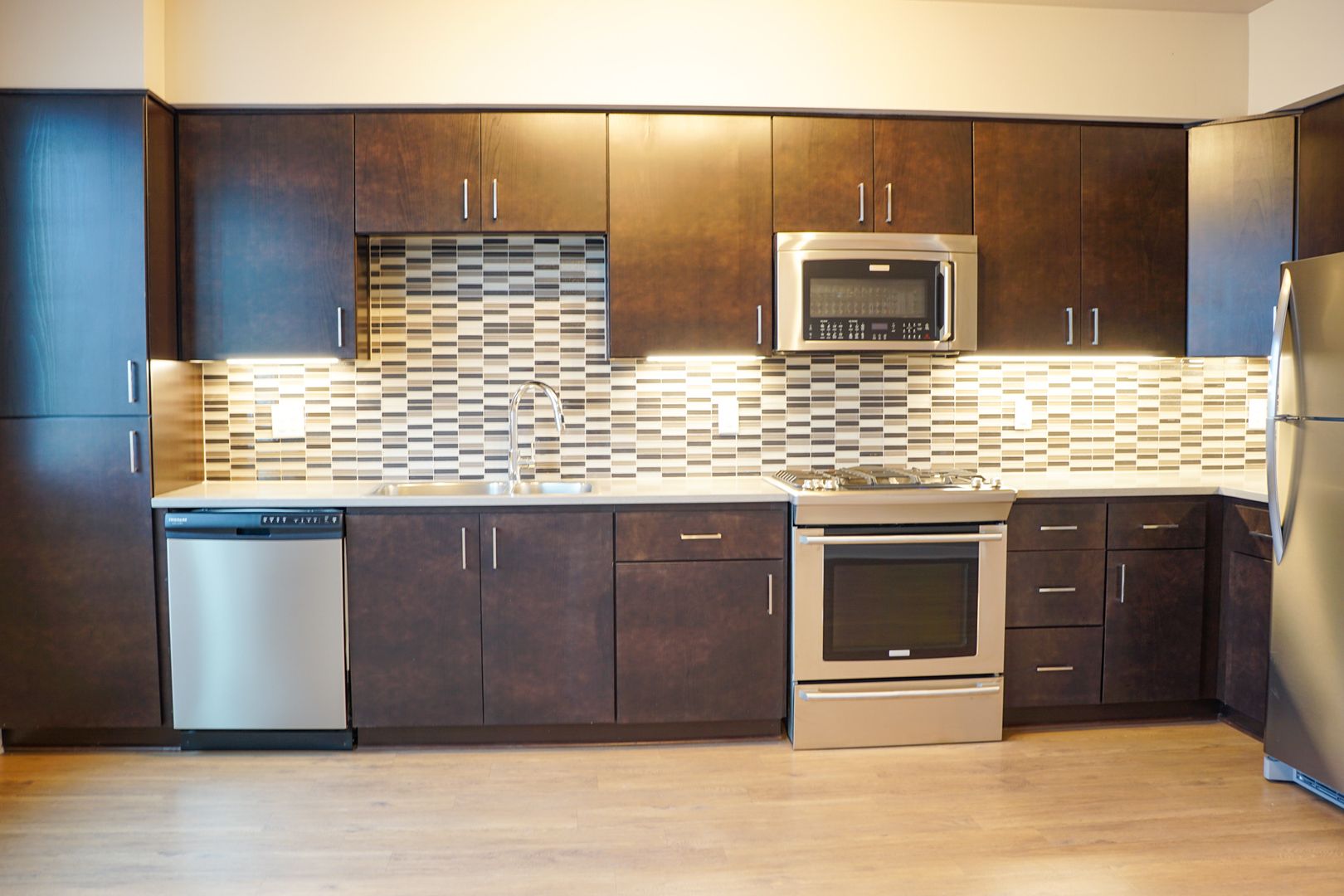 You'll love this modern 4th-floor studio with quartz countertops & Italian glass tiled backsplash, gas range, dishwasher and your own washer & dryer!