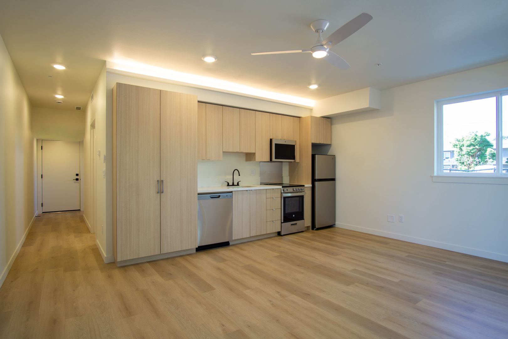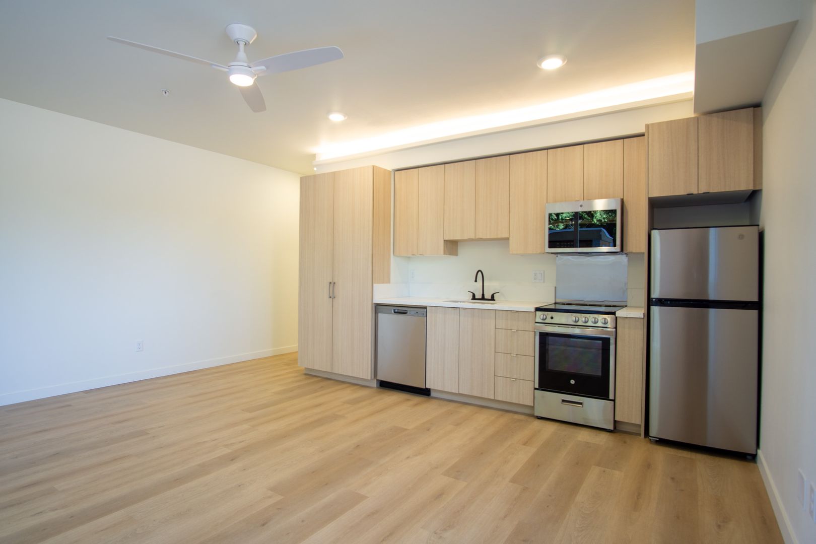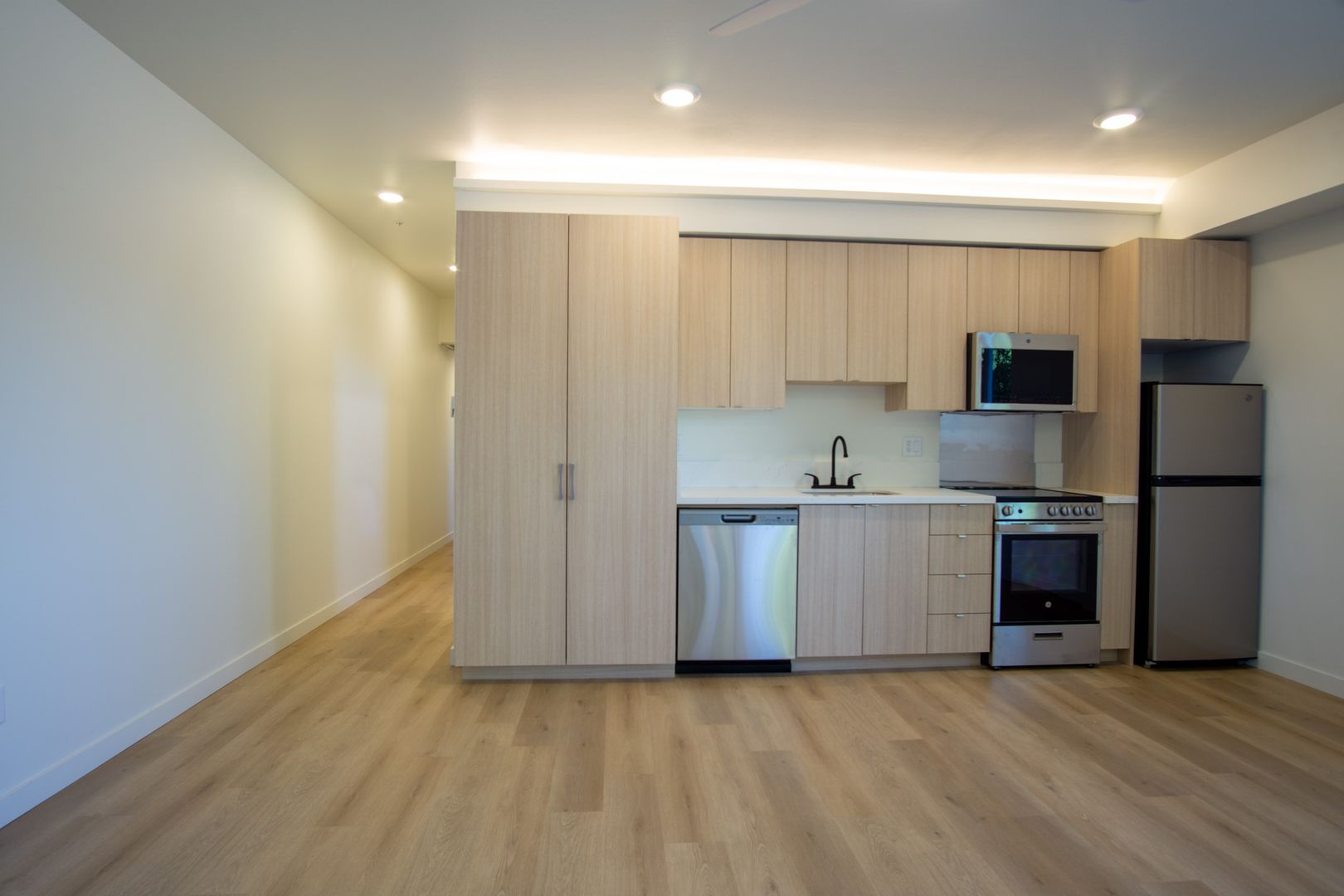 • Premium finishes throughout, including elegant oak vinyl plank flooring and custom indirect LED lighting