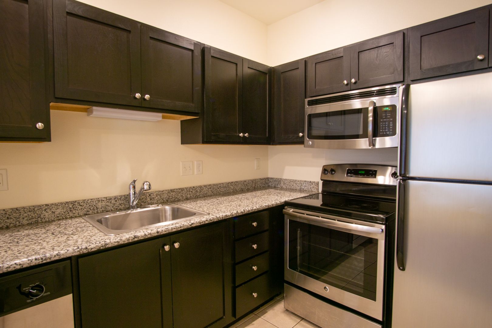 - Shaker cabinetry & granite slab countertops