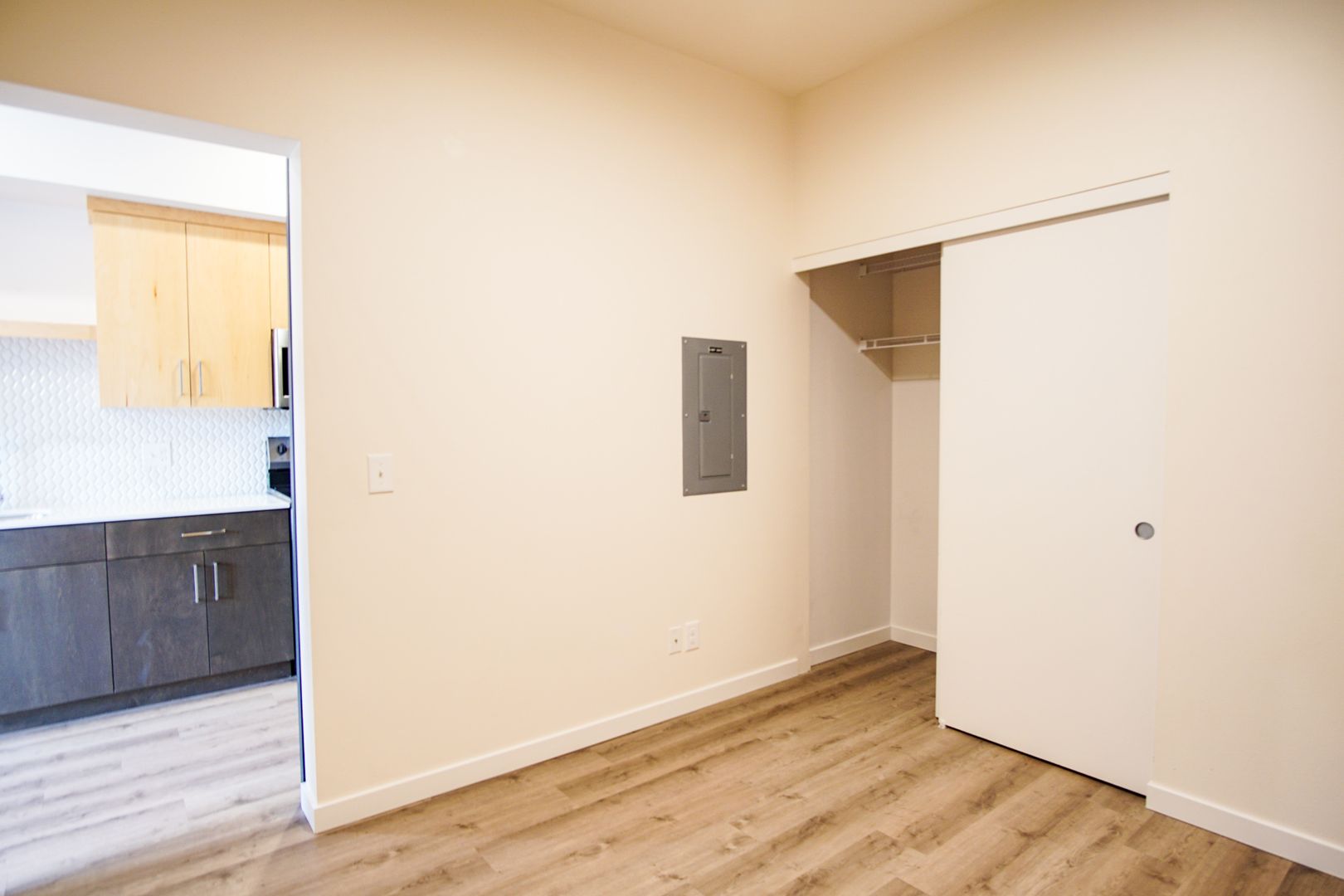 - Separate bedroom with barn door and large closet